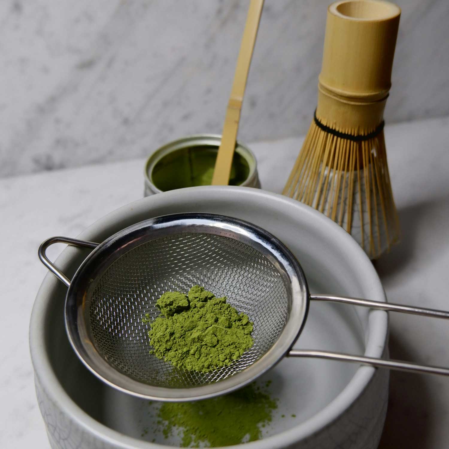 Normalerweise wird empfohlen, Matcha vor der Zubereitung zu sieben, um Klumpen zu vermeiden. Unser hochwertiger Matcha ist jedoch so fein gemahlen, dass ein Sieb nicht notwendig ist.