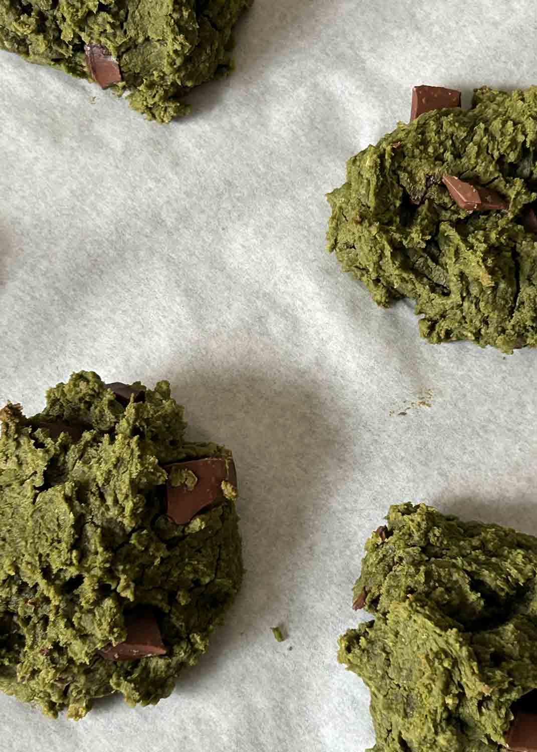 Disse Kichererbsen Matcha Cookies er ikke kun sunde og super nemme at lave – de rammer også fuldt ud TikTok-trenden omkring Cookie Dough lavet af bælgfrugter. Det smarte: Vores Ceremonial Matcha sørger for den ekstra portion antioxidanter og et diskret bittert twist, der passer perfekt sammen med sød ahornsirup og mørk chokolade.