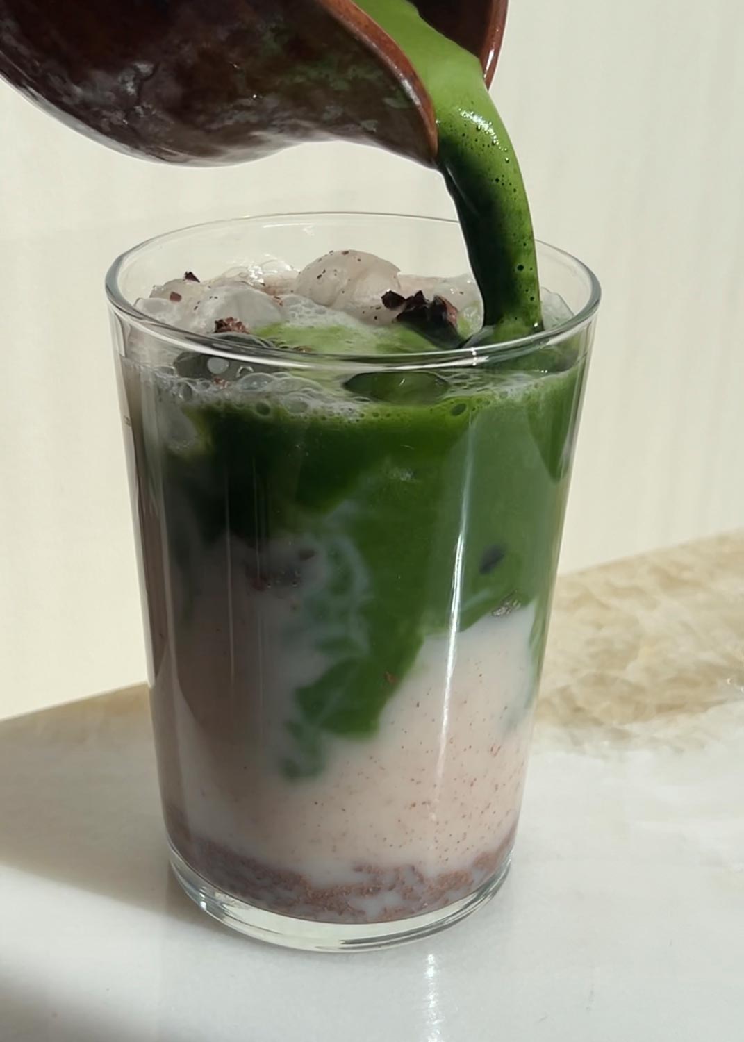 Stracciatella meets Matcha – this latte is not only a visual highlight, but also combines dark chocolate with finely ground HEALTHBAR Ceremonial Matcha to an ice-cold moment of enjoyment.