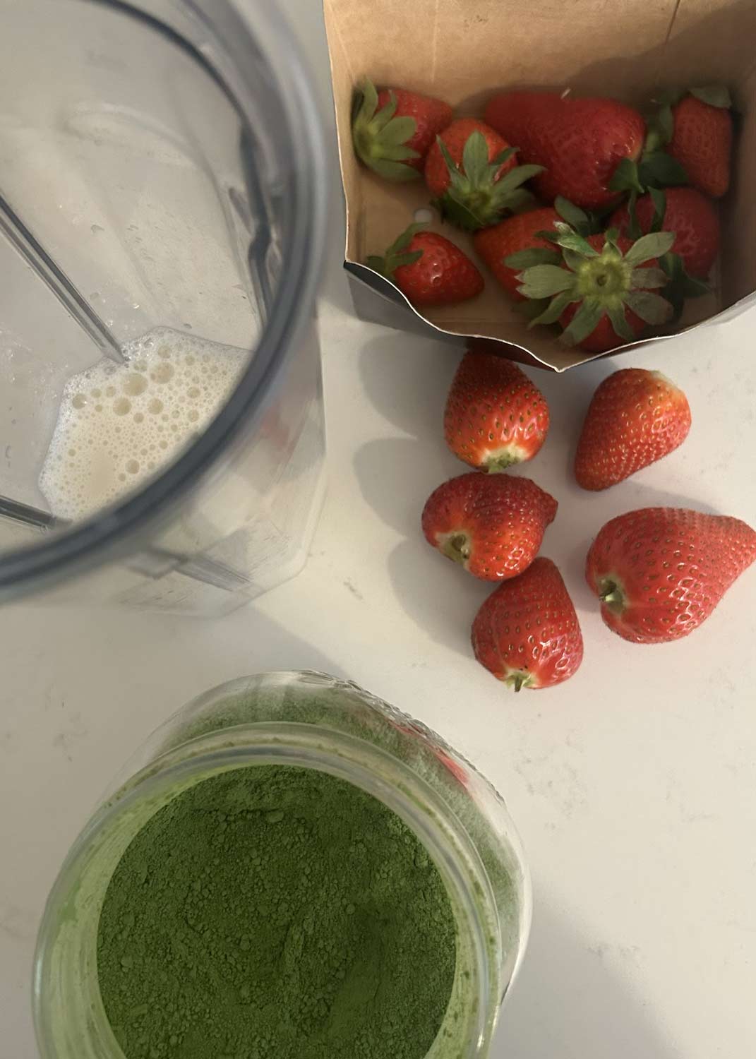 | Kategorie | Vegan, Matcha, Summer Drink, Strawberries |