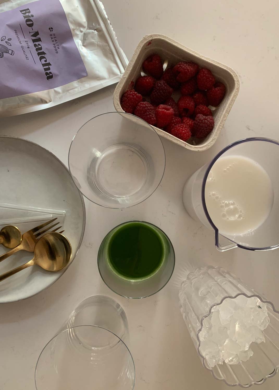 This Iced Raspberry Matcha Latte combines sweet raspberries, creamy rice-coconut milk, and high-quality HEALTHBAR matcha for the perfect summer drink. Refreshingly light and simply irresistible! 🍇🍵