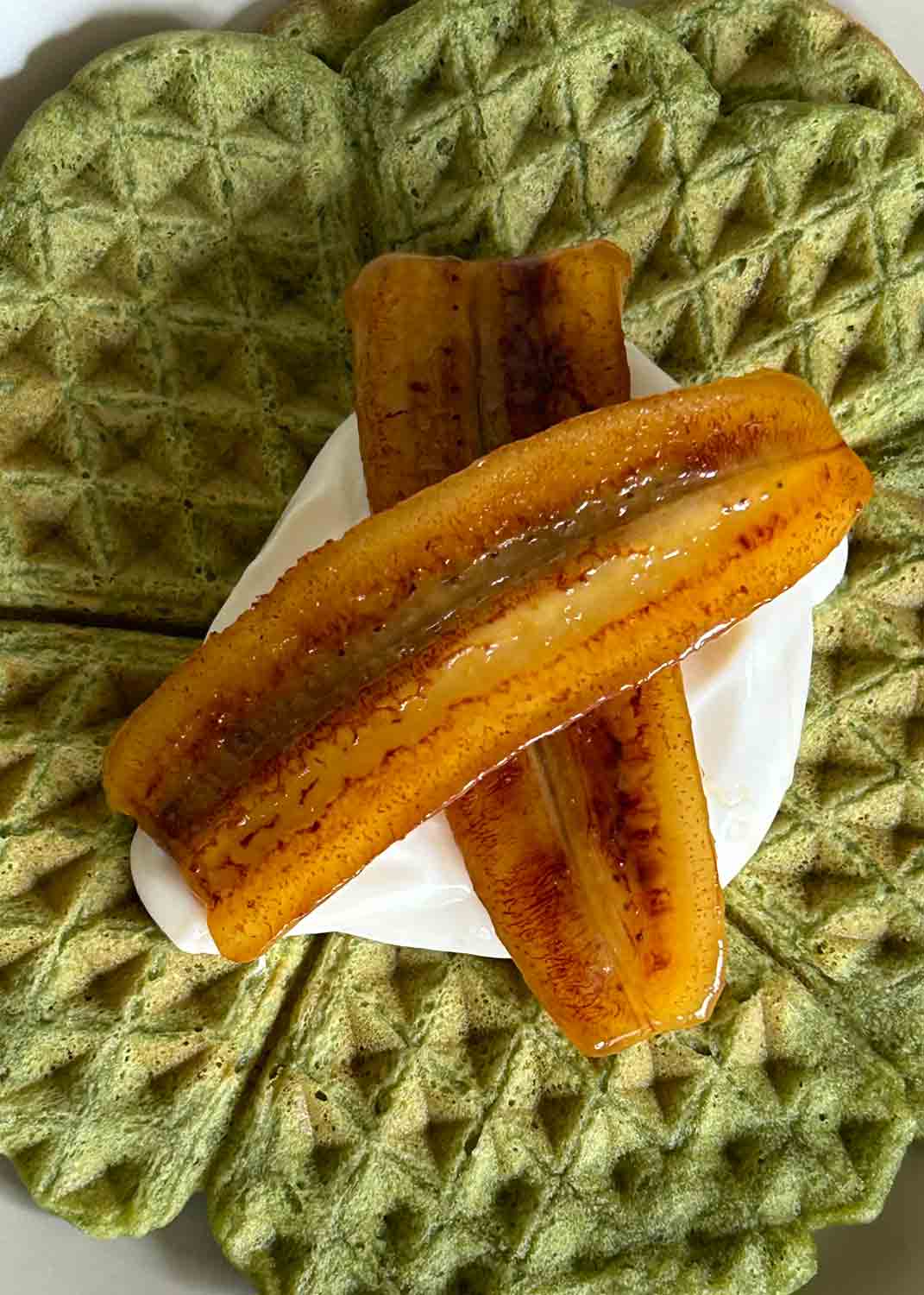 Knapperig, groen, bananensmaak – deze wafels zijn een brunchdroom 💚🍌
