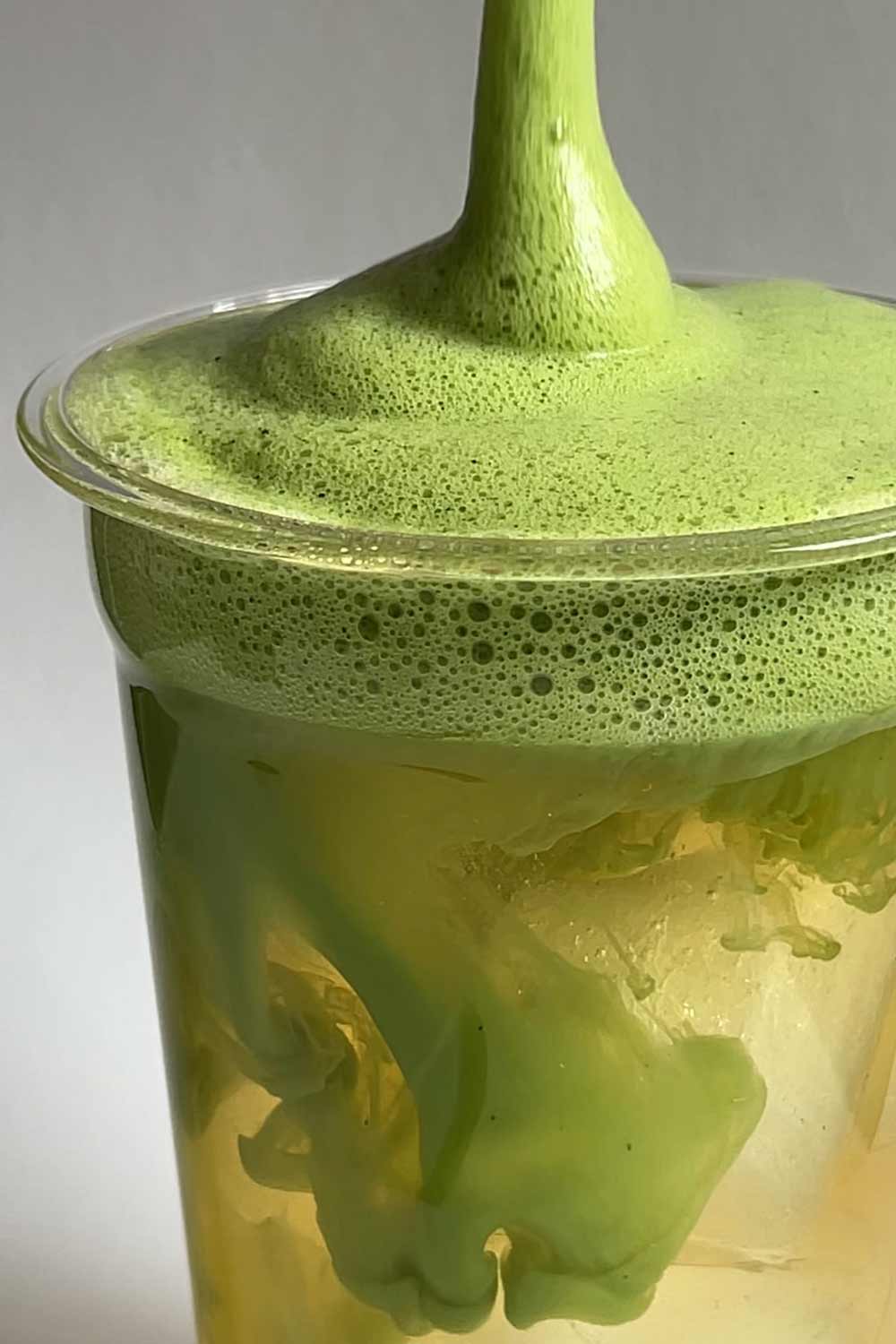Die cremige Matcha-Milch vorsichtig obenauf geben – nicht umrühren, sondern als Wolke servieren. Dann genießen!
