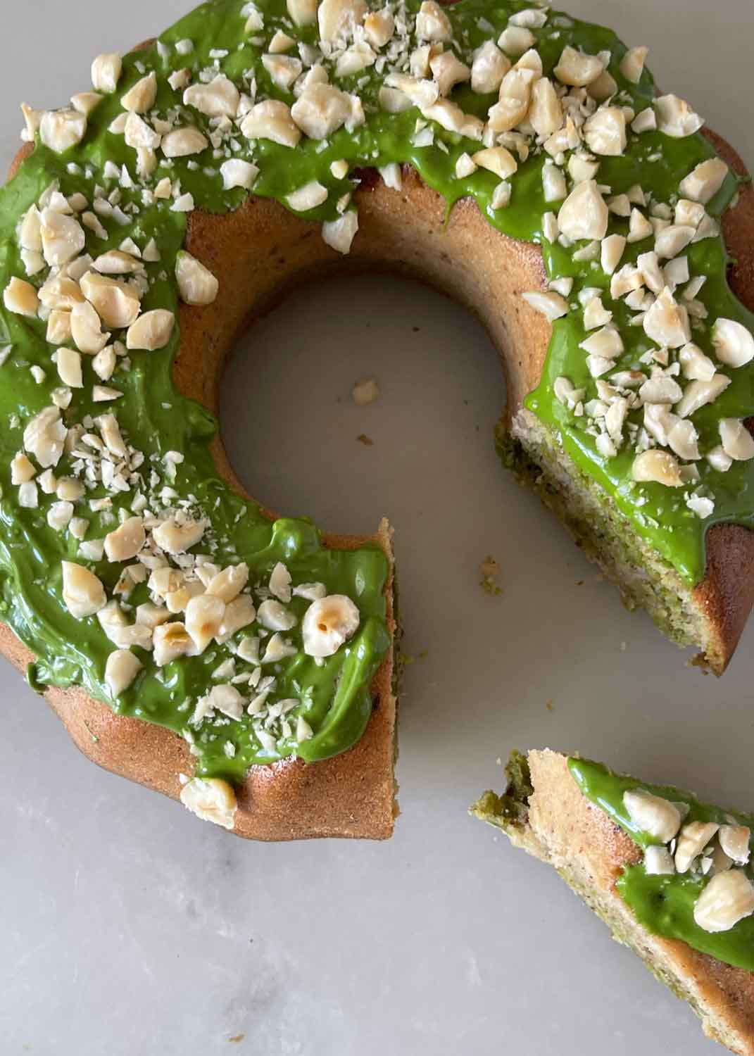 Luchtige marmercake met een groene twist: delicate vanillenoten ontmoeten aromatische HEALTHBAR Ceremoniële WedstrijdA– geheel zonder dierlijke producten!