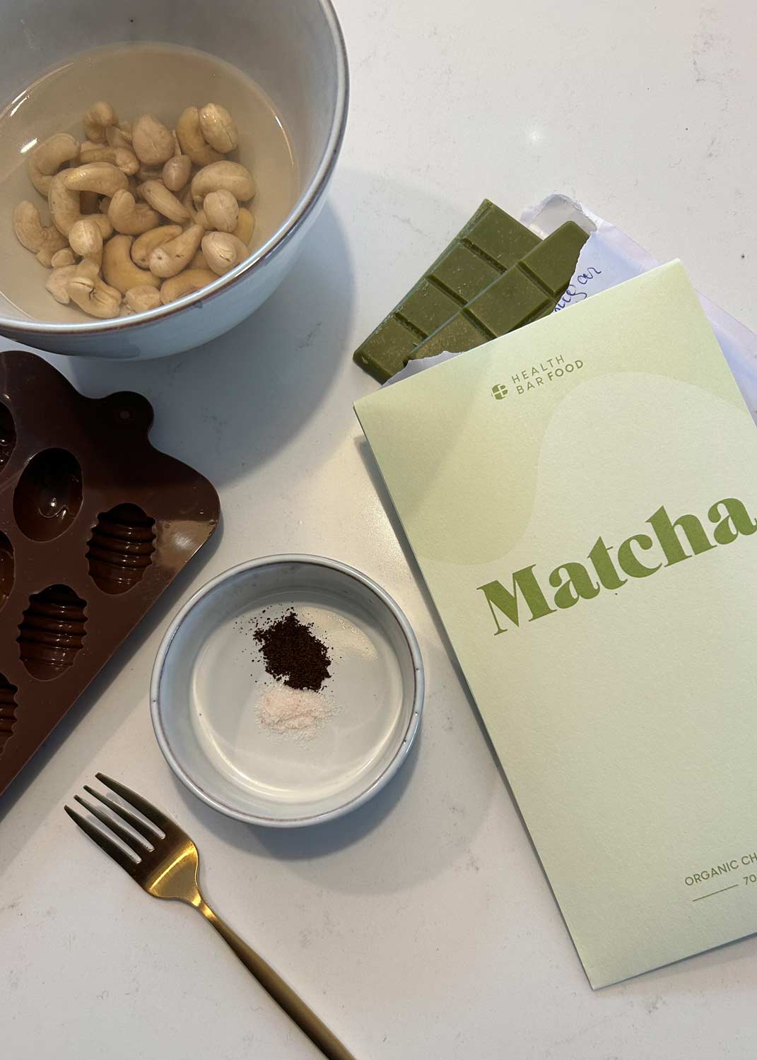 Deze heerlijk smeltende Matcha-pralines bestaan uit een romige cashewnotenvulling en onze Health Bar Matcha ChocoladeSnel klaar, perfect geportioneerd en een echte blikvanger in uw paasmandje - of gewoon om zelf van te genieten.