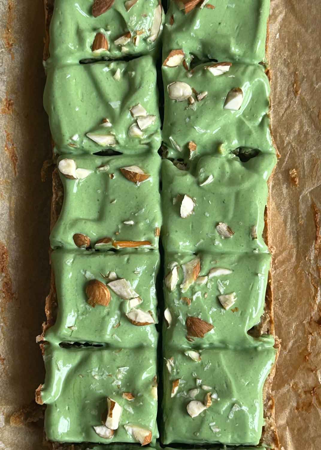 Deze veganistische worteltaart is snel klaar, heerlijk smeuïg en volledig gemaakt zonder geraffineerde suiker. Het romige matcha-glazuur geeft deze klassieker een frisse, lichtzure smaak – perfect voor wie van een evenwichtige zoetheid houdt.