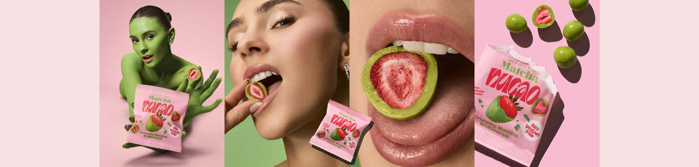 Die Erdbeeren stammen aus nachhaltigem Anbau, die Schokolade ist bio, vegan und mit hochwertigem japanischem HEALTH BAR Matcha verfeinert. Kein Schnickschnack – nur ehrliche Zutaten für einen bewussten, pflanzlichen Genuss-Snack mit Verantwortung.