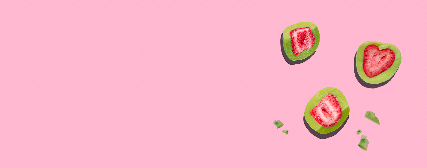 Feinste vegane Schokolade trifft auf hochwertigen japanischen Bio-Matcha. Das Ergebnis: eine cremig-herbe Hülle, die perfekt mit der Fruchtigkeit harmoniert.