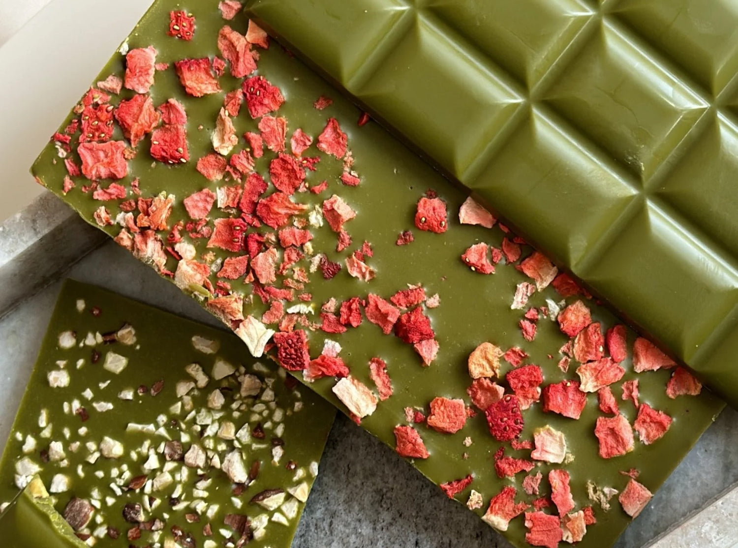 Die Schokolade wird schonend bei max. 48 Grad geschmolzen. Somit wird sichergestellt, dass alle Benefits des Matchas vollständig erhalten bleiben. Die Health Bar Schokolade ist vegan, glutenfrei und ohne raffinierten Zucker.