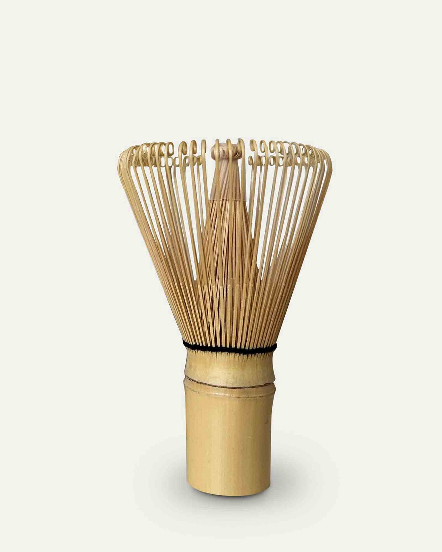 A matcha whisk, also known as a Chasen, is not necessarily required, but it is a traditional and very useful tool for preparing Matcha. A matcha whisk helps to thoroughly mix the matcha powder with hot water to achieve a uniform consistency and texture and to create a fine foam on the surface of the drink.